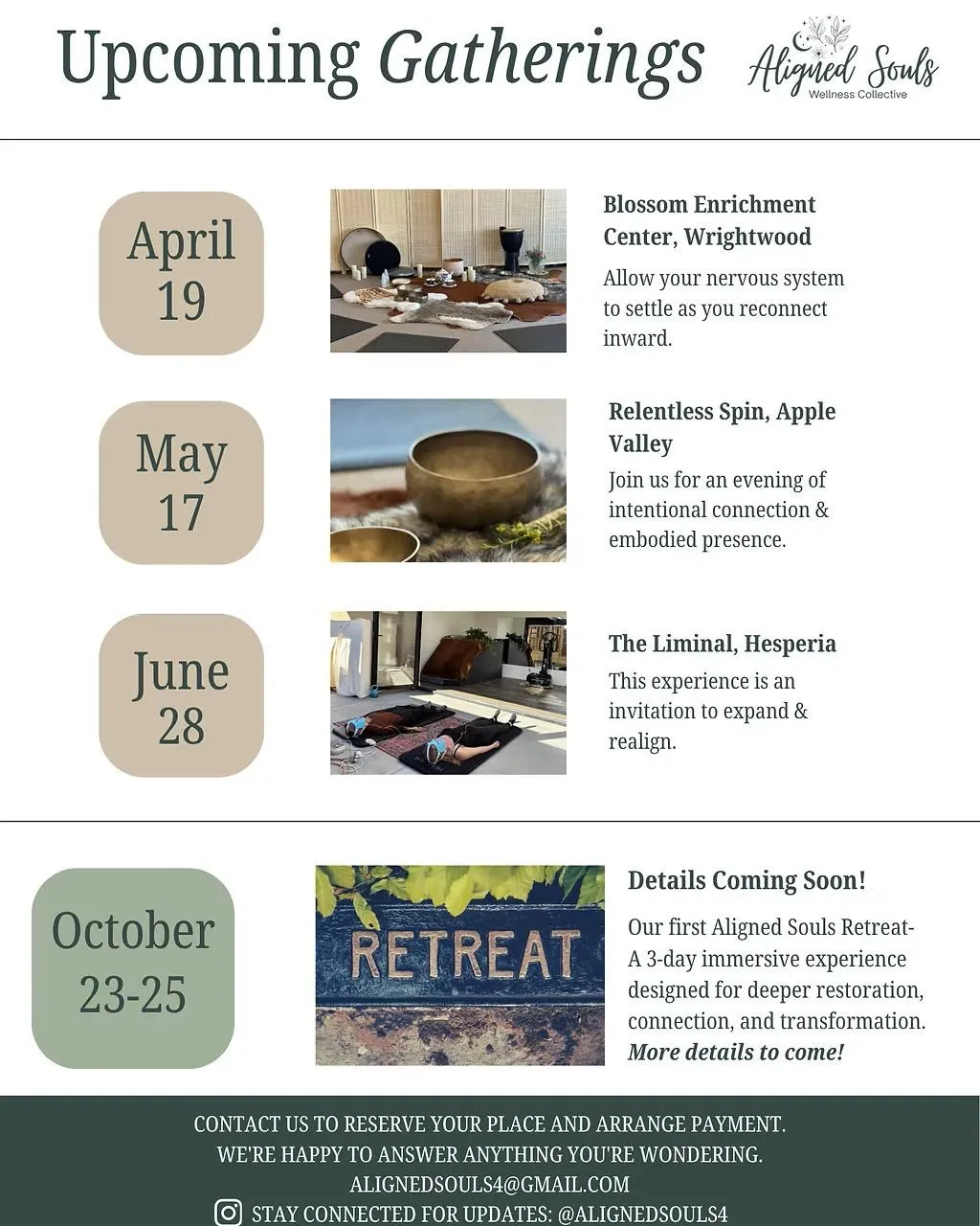 At its core, Aligned Souls is about holding space for community wellness and shared healing experiences.